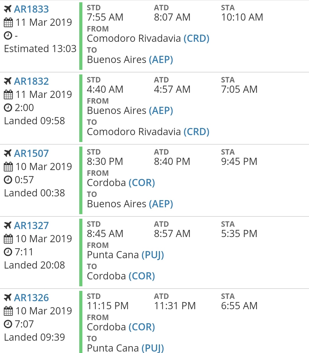 While these were originally intended for new flights to Punta Cana or Cancun front secondary cities such as Cordoba. They are also in operation on intra-Argentina flights and across South America.