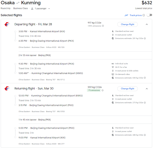 This deal takes us from Osaka to Kunming with China Eastern Airlines! This is a great way to accumulate 36 XPs for FlyingBlue members as you would earn 30 XPs or 15 XPs per international segment and 6 XPs for each internal segment.